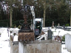 De driewielige Boki grafdelfmachine aan het werk.